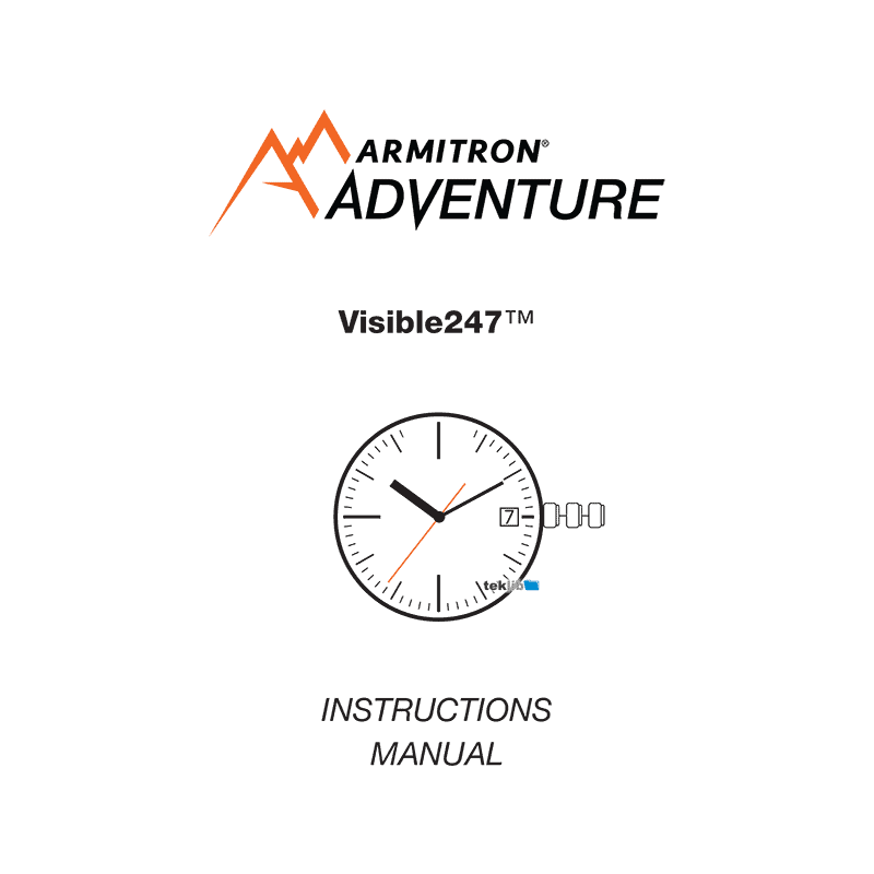 This PDF instruction manual is for the Armitron Adventure Ray Visible247 AD/1005 watch.