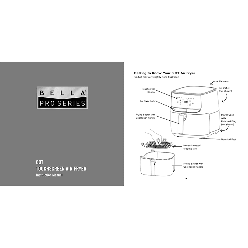 Bella Pro 6QT Touchscreen Air Fryer Instruction Manual