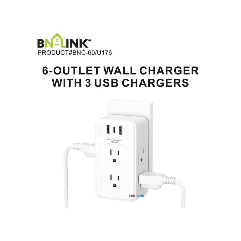 BN-LINK BNC-60/U176 6 outlet + 3 USB port Wall Tap