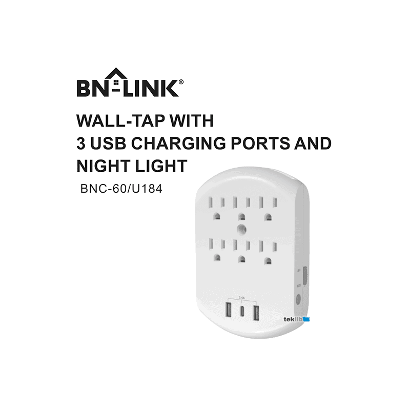 BN-LINK BNC-60/U184 6 outlet + 3 USB port Wall Tap with Night Light