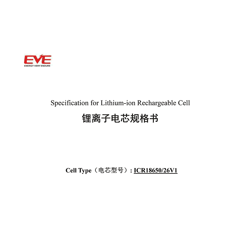 This data sheet provides all the information from EVE ENERGY CO about the ICR18650/26V1 battery cell, as detailed in the table of contents. Reading it completely will address most questions you might have. You can download and save it for offline use, including viewing it on your device or printing it for your convenience if you prefer a paper version.