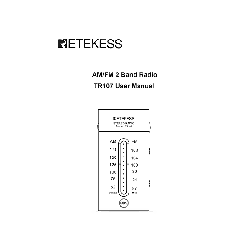 This user manual provides all the information from SHENZHEN RETEKESS TECHNOLOGY about the TR107 am/fm radio, as detailed in the table of contents. Reading it completely will address most questions you might have. You can download and save it for offline use, including viewing it on your device or printing it for your convenience if you prefer a paper version.