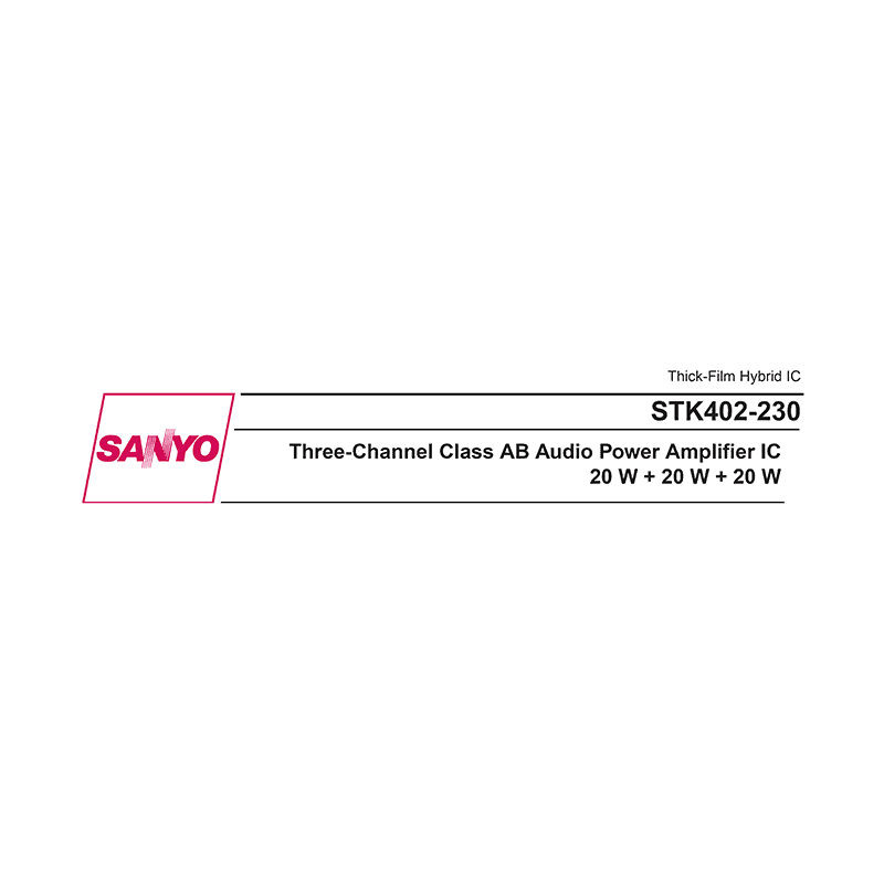 Download PDF datasheet for Sanyo STK402-230 20W+20W+20W Three-Channel Class AB Audio Power Amplifier IC (EN) 4 pages ENN7069A N1102AS (OT) No.7069 zip