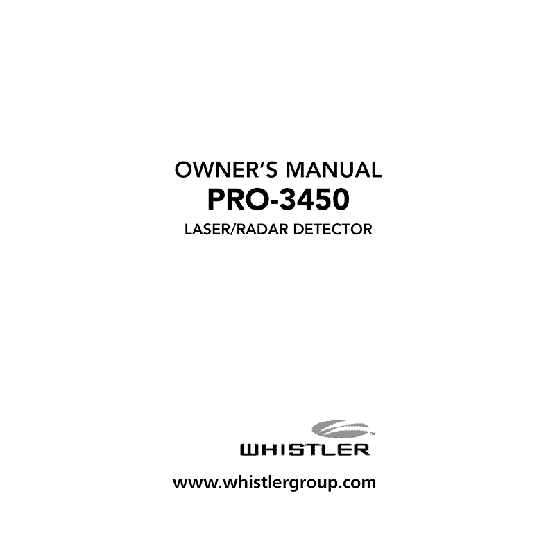 Whistler PRO-3450 Laser/Radar Detector Owner’s Manual