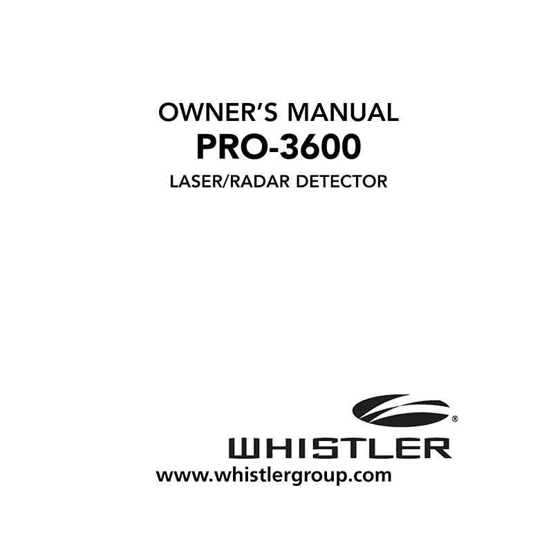 Whistler PRO-3600 Laser/Radar Detector Owner’s Manual
