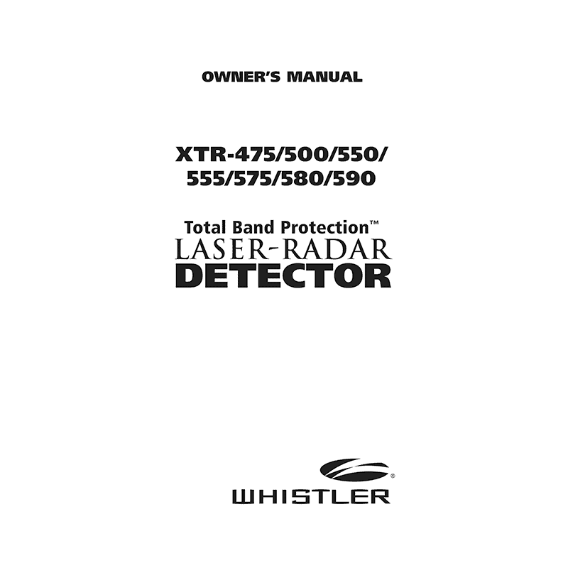 Whistler XTR-575 Laser-Radar Detector Owner’s Manual