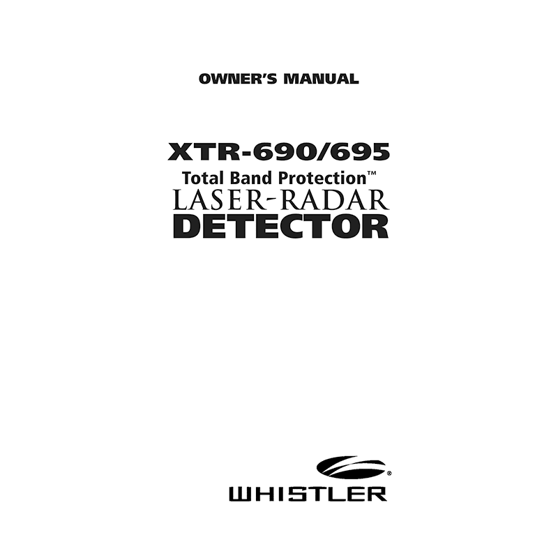 Whistler XTR-690 Laser-Radar Detector Owner’s Manual